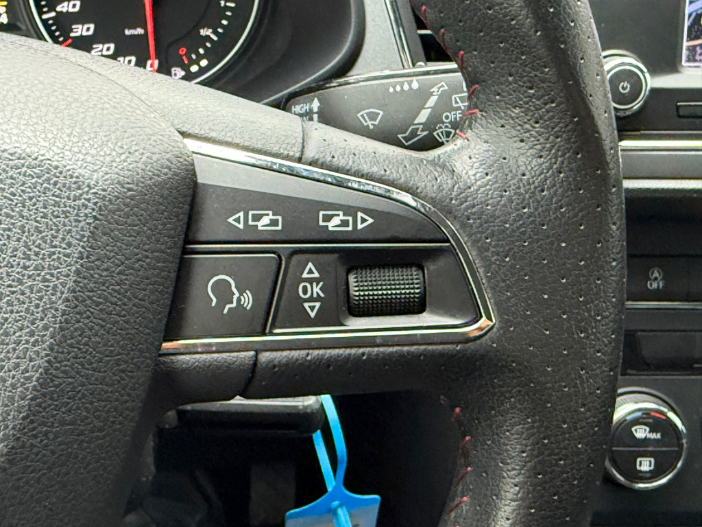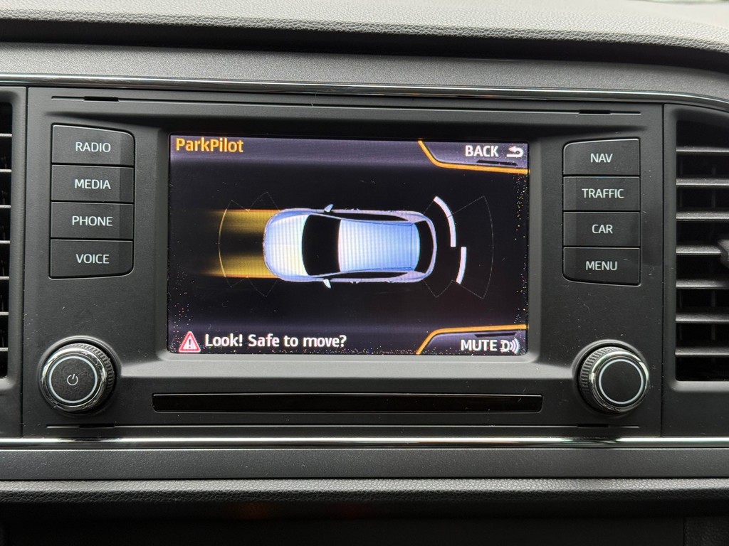 Met de routebegeleiding van het navigatiesysteem kunt u zich volledig op het verkeer concentreren. Met automatische airconditioning hoeft u alleen de gewenste temperatuur in te stellen. Het systeem doet de rest. Terwijl u stuurt, kunt u het audiosysteem bedienen met de knoppen onder uw vingertoppen. Parkeersensoren zijn een waardevolle toevoeging aan deze auto. De sensoren waarschuwen tijdens het parkeren en voorkomen schade aan de auto. De elektronische systemen in deze Seat helpen u actief om comfortabeler te rijden. Een automatisch inschakelbare verlichting en een regensensor houden de omstandigheden onderweg in de gaten. En deze auto heeft ook cruise control, automatisch dimmende binnenspiegel, lederen stuur, centrale deurvergrendeling met afstandsbediening, boordcomputer en lederen versnellingspook als standaard uitrusting.