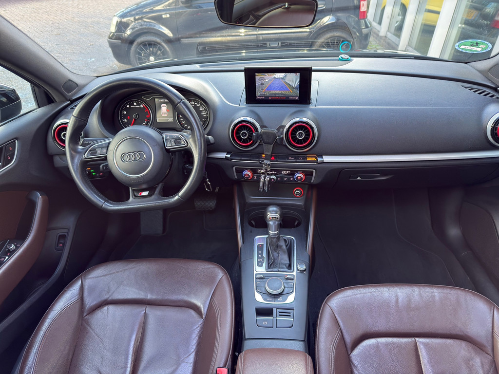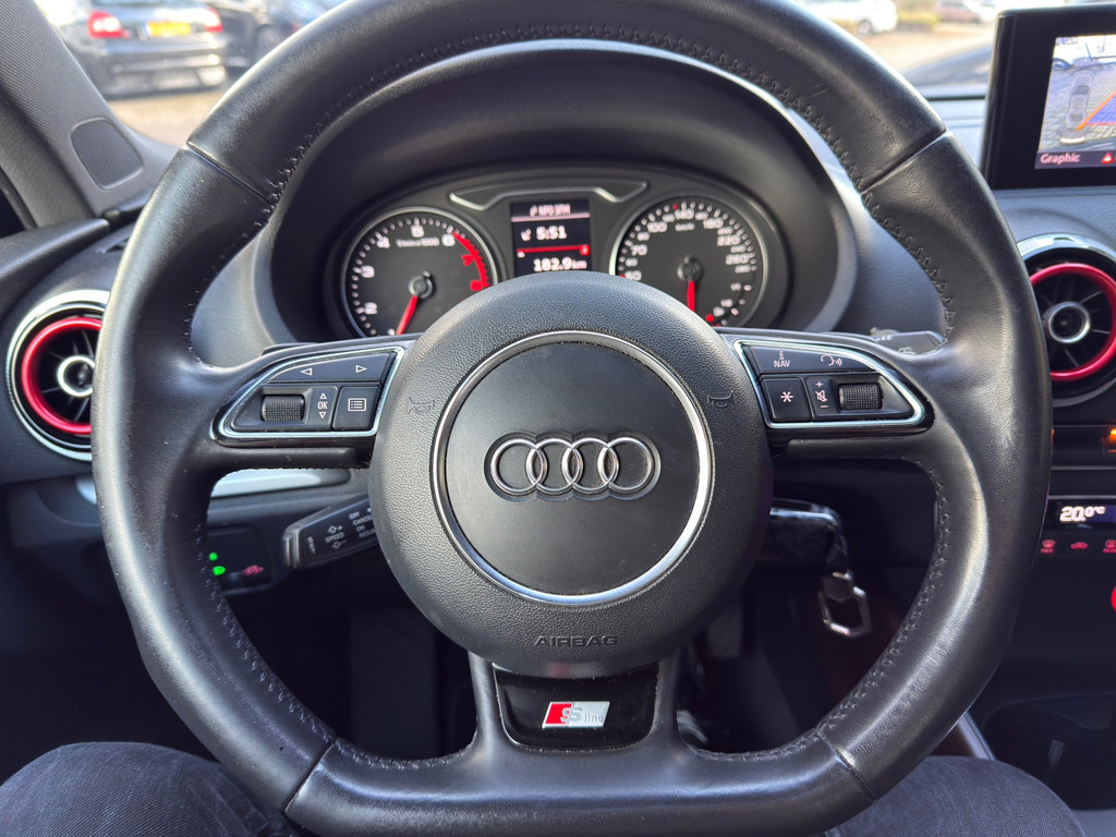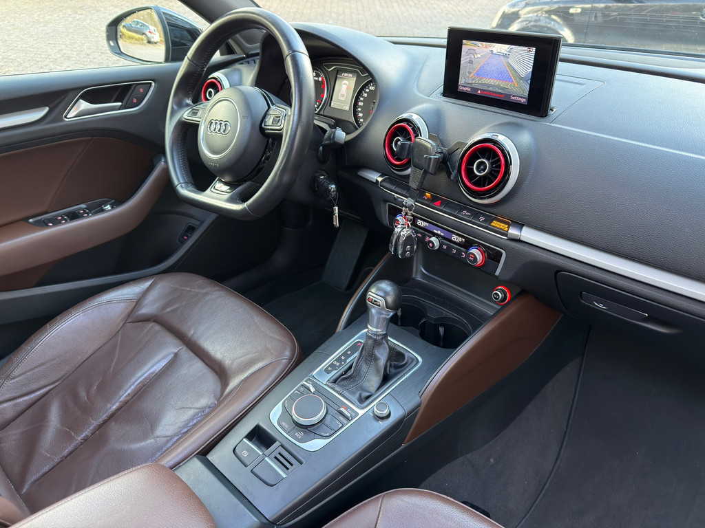 Hoeveel ruimte heeft u nog bij het inparkeren? De achteruitrijcamera brengt helder in beeld wat zich achter de auto bevindt en geeft een geluidssignaal. De bediening van het audio-installatiesysteem en het navigatiesysteem gebeurt met knoppen op het stuur. De automatische airconditioning zorgt voor een prettige binnentemperatuur. Deze Audi A3 Limousine maakt het rijden graag gemakkelijk. Daarom verzorgt de regensensor de mate van ruitreiniging die de ruitenwissers moeten leveren bij neerslag. Zuinig zoeven, dat kan deze auto dankzij de aanwezige cruise control. Ook automatisch dimmende binnenspiegel, lederen stuur, centrale deurvergrendeling met afstandsbediening en toerenteller zijn aan boord.