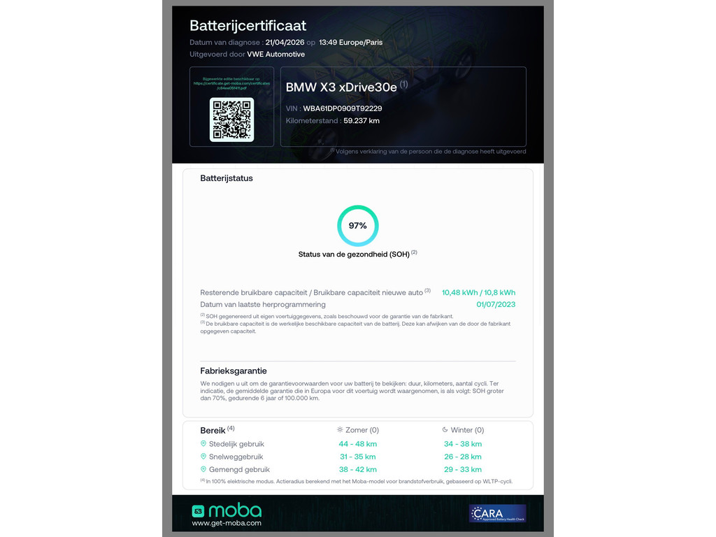 - Actieradius elektrisch (volgens fabrikant)