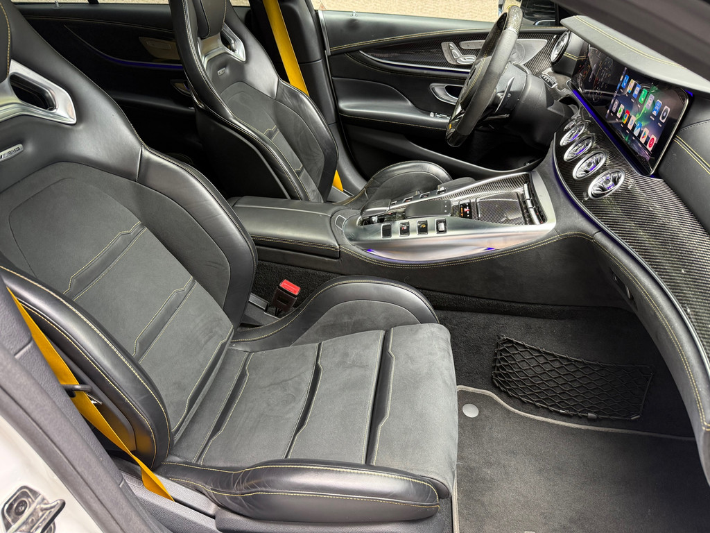 Laat u verleiden door de stijl en de prestaties van deze Mercedes-Benz AMG GT 4-Door Coupe. En heel aantrekkelijk is de stoere, sportieve AMG-styling. Een achtcilinder motor en een automatische transmissie zorgen voor de uitstekende prestaties van deze auto. Passend bij een auto in het hogere segment is de luchtvering, en dat is te merken aan de gelijkmatige wegligging. De vierwielaandrijving maakt van deze auto een echte krachtpatser met een formidabele trekkracht. Van de diverse pluspunten is ook het lederen interieur het noemen waard. Zit u goed? De stoelen zijn eenvoudig instelbaar dankzij de elektrische bediening met geheugen. Volop licht en ruimtelijk gevoel geeft het elektrische bediende glazen panoramadak. Met een druk op de knop gaat de elektrische achterklep open. Natuurlijk behoren 22 inch lichtmetalen velgen, AMG-styling, LED matrix verlichting, geluidsisolerende ramen, LED-achterlichten en verstelbare lendensteunen ook tot de uitrusting van deze complete auto.