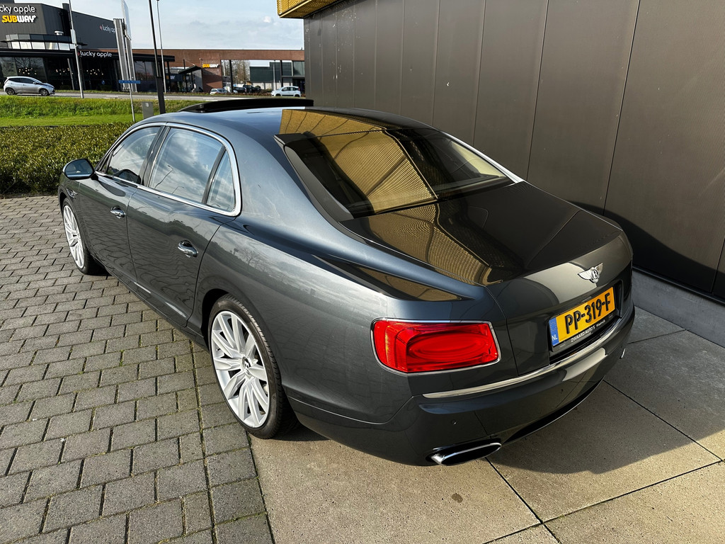 Deze Bentley Flying Spur komt uit 2014, werd geleverd van 01-03-2013 tot 31-12-2019 en kostte toen € 311.269,-. Deze geïmporteerde personenauto staat sinds 2017 op kenteken, is voorzien van een benzine-motor, heeft een maximum vermogen van 460 kW (625 PK) en een cilinderinhoud van 5998 cc. De personenauto heeft een topsnelheid van 320 km per uur en bereikt vanuit stilstand de 100 km/u in 4,6 seconden. Het verbruik van deze personenauto is gemiddeld 14,7 liter per 100 km en hij weegt 2465 kg. De APK is geldig tot 13-10-2024 en de wegenbelasting bedraagt gemiddeld € 519,58 per kwartaal.