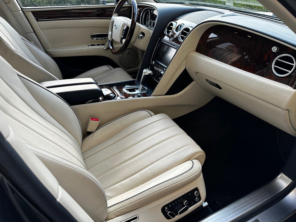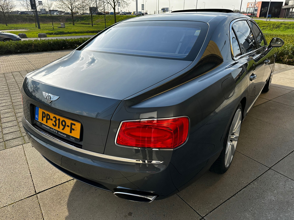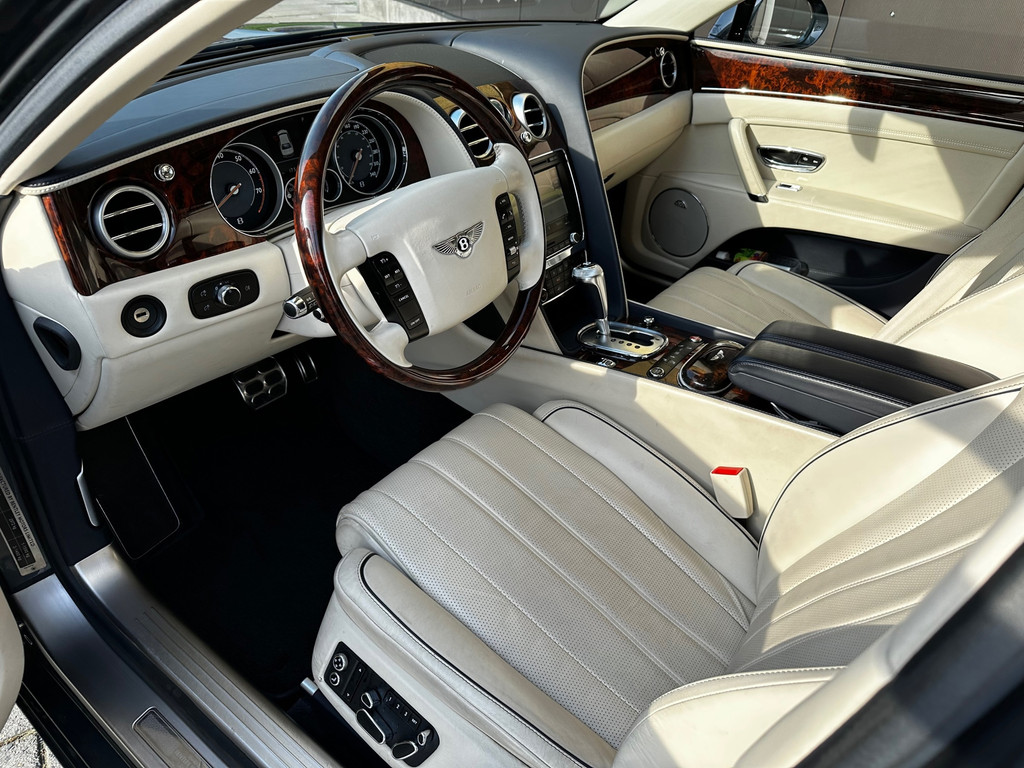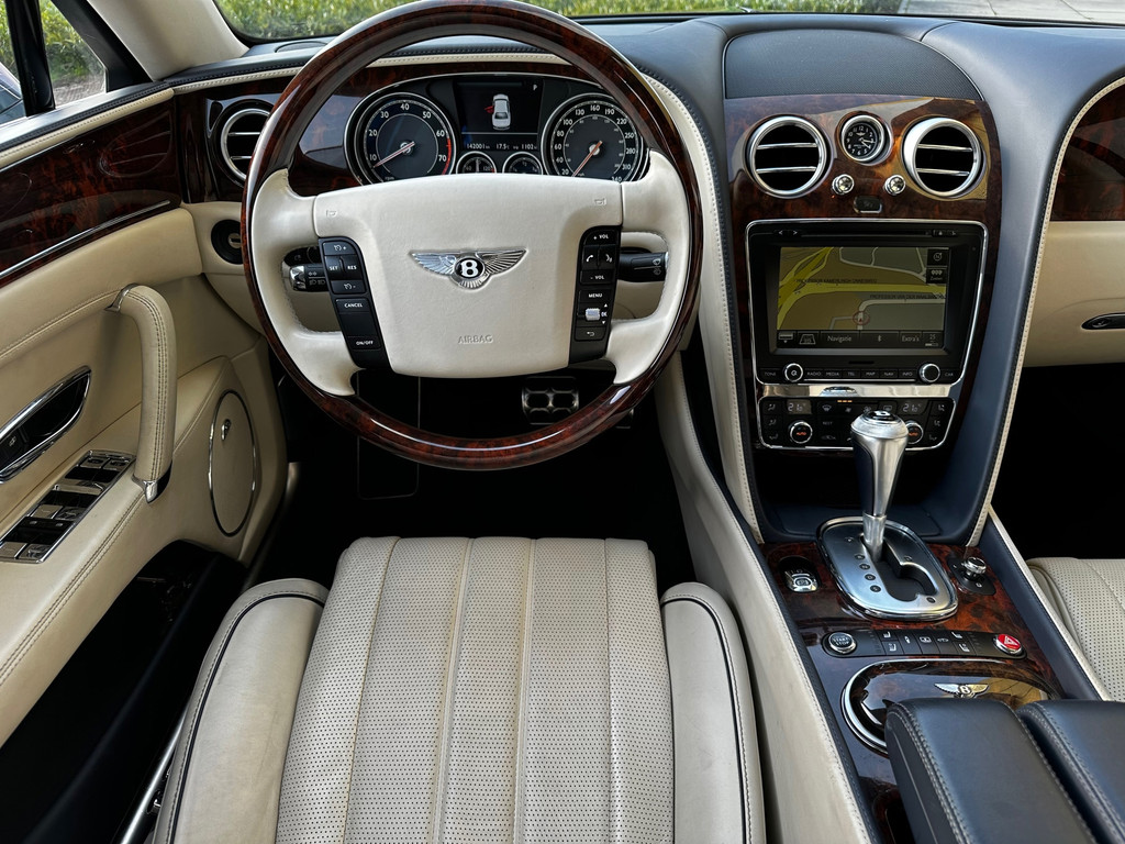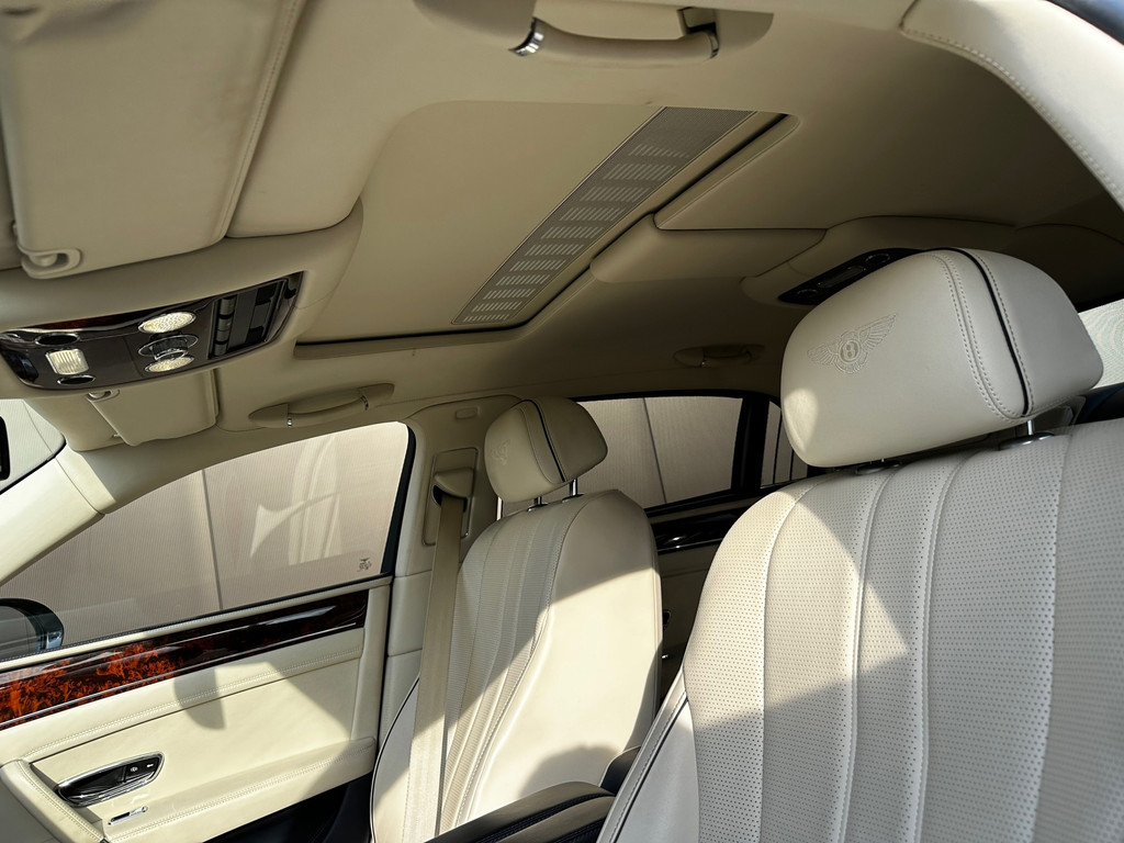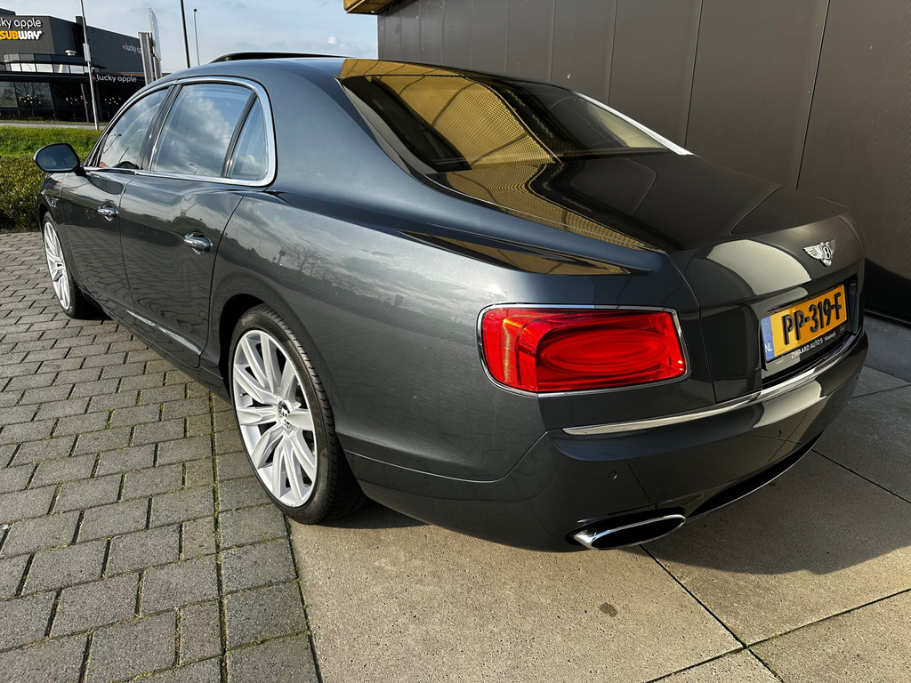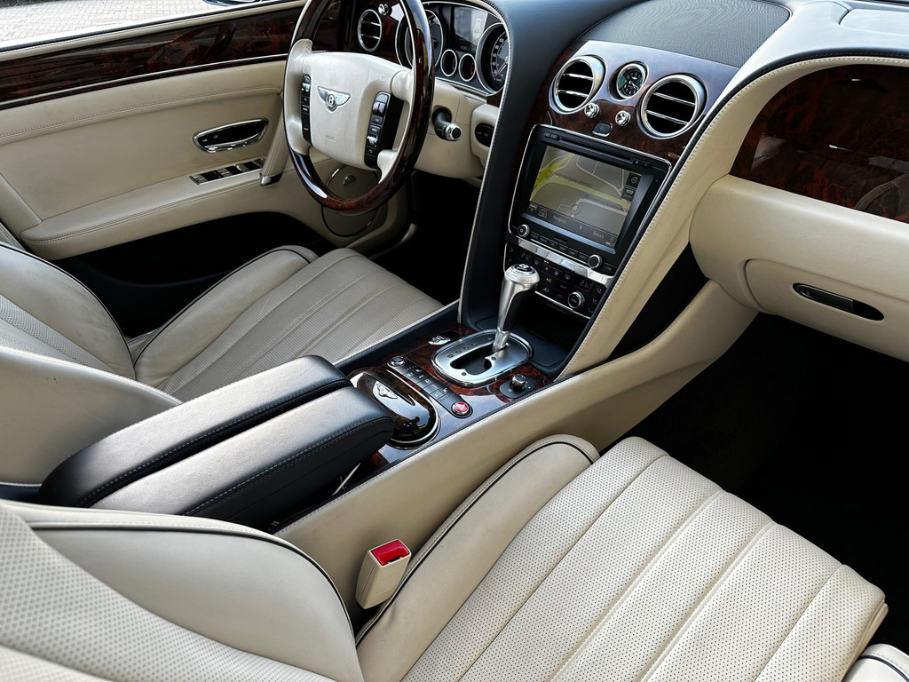 Laat u niets wijsmaken, deze Bentley Flying Spur biedt alles wat u van een auto verlangt. De automatische transmissie en de twaalfcilinder motor maken het autorijden snel en comfortabel. De luxe van het lederen interieur, gecombineerd met het gemak van het elektrisch bediende glazen panorama dak en de superhandige elektrisch bedienbare achterklep zorgen voor een wel heel complete uitvoering. Neem plaats op de comfortabele stoelen. Dankzij de elektrische bediening en het geheugen is het eenvoudig om hierin de beste zitpositie te vinden. Elke wegdek voelt aan als een biljartlaken dankzij de luchtvering. Dankzij de xenonverlichting profiteert u in het donker van een krachtige en heldere lichtbundel. Tot de uitrusting van deze Bentley behoren ook elektrische zonnerollo voor de achterruit, 21 inch lichtmetalen velgen, elektrisch inklapbare buitenspiegels, extra getint glas en elektrisch bedienbare ramen achter.
