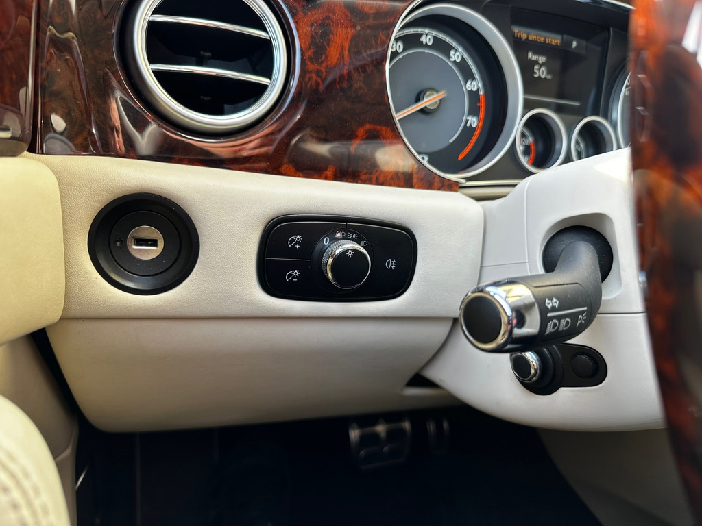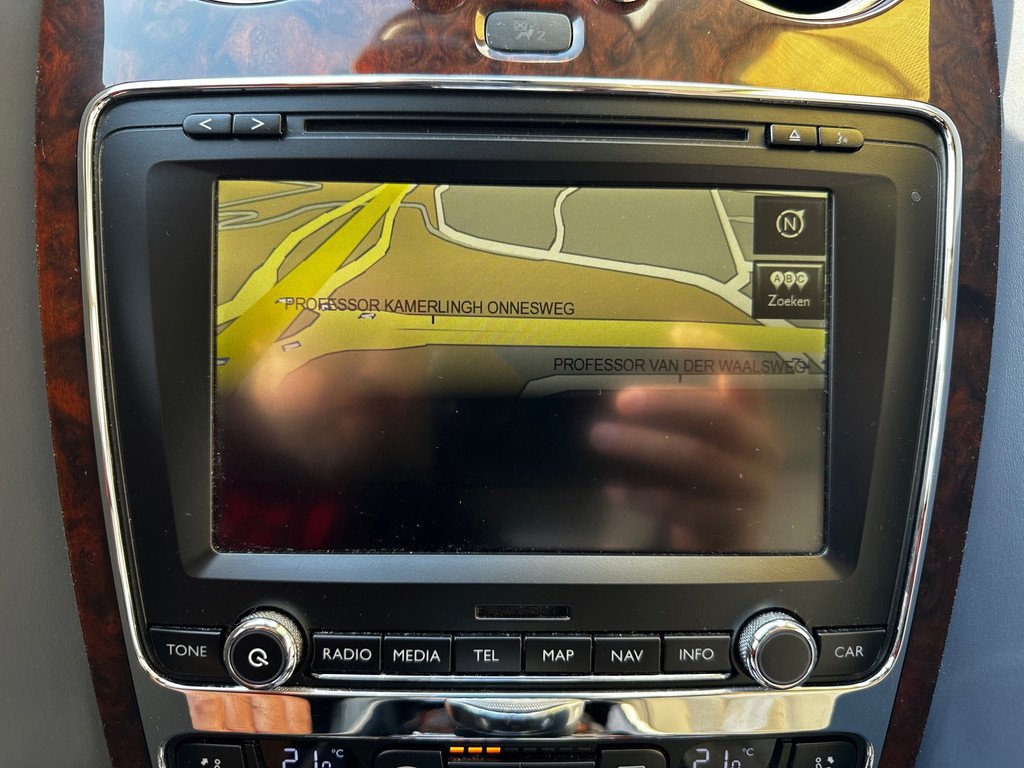 Een handige optie is de achteruitrijcamera. Achteruitrijden, inparkeren en manoeuvreren gaat gemakkelijker dan ooit. Het complete geluidsspectrum van de hi-fi krijgt een extra boost door het high performance audiosysteem. Bij de luxe van deze auto hoort ook electronic climate control. Het hoort bij een intelligente auto als deze dat hij zelf in staat is om zijn omgeving in de gaten te houden. Dat doet deze Bentley met een automatisch inschakelbare verlichting en een regensensor. De voordelen van de aanwezige cruise control hoeven we niet uit te leggen. Een mooie, constante snelheid - niet te snel, niet te langzaam. Precies goed. Met navigatiesysteem met harde schijf, houten stuurwiel en keyless entry is deze Bentley helemaal compleet.