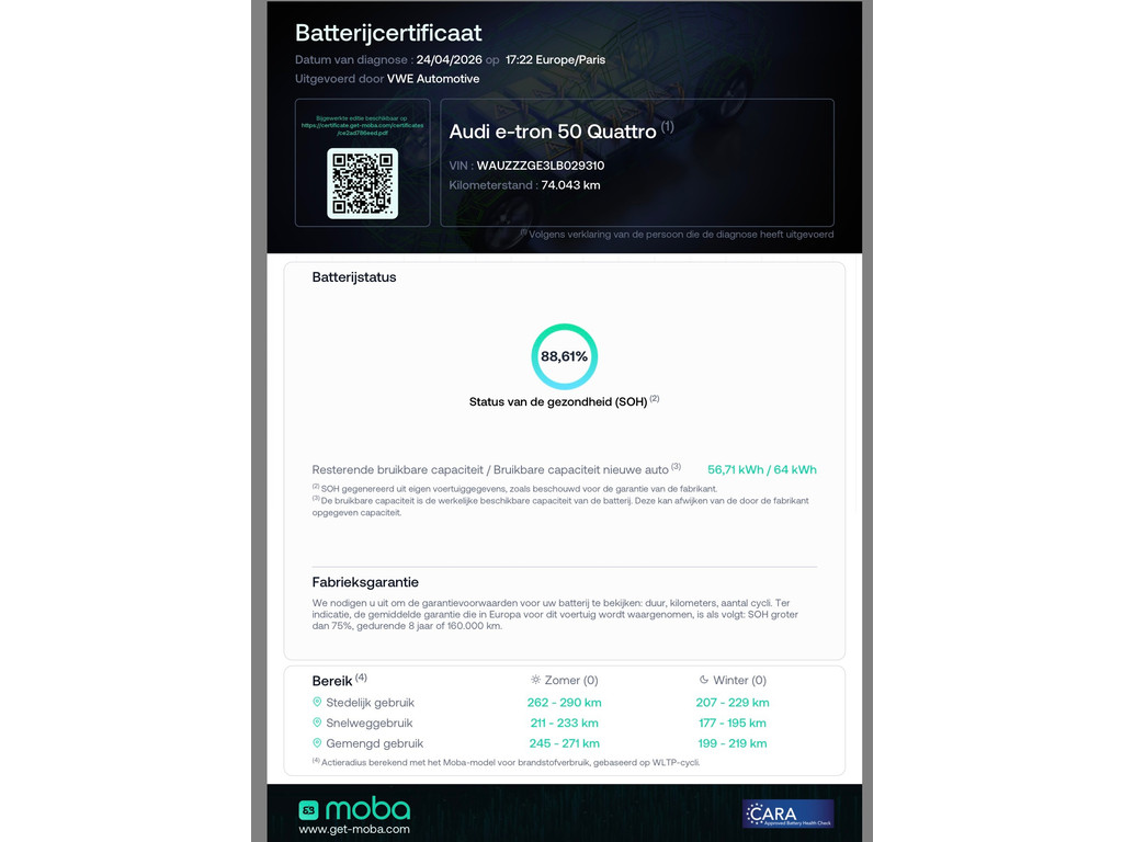 - Actieradius elektrisch (volgens fabrikant)